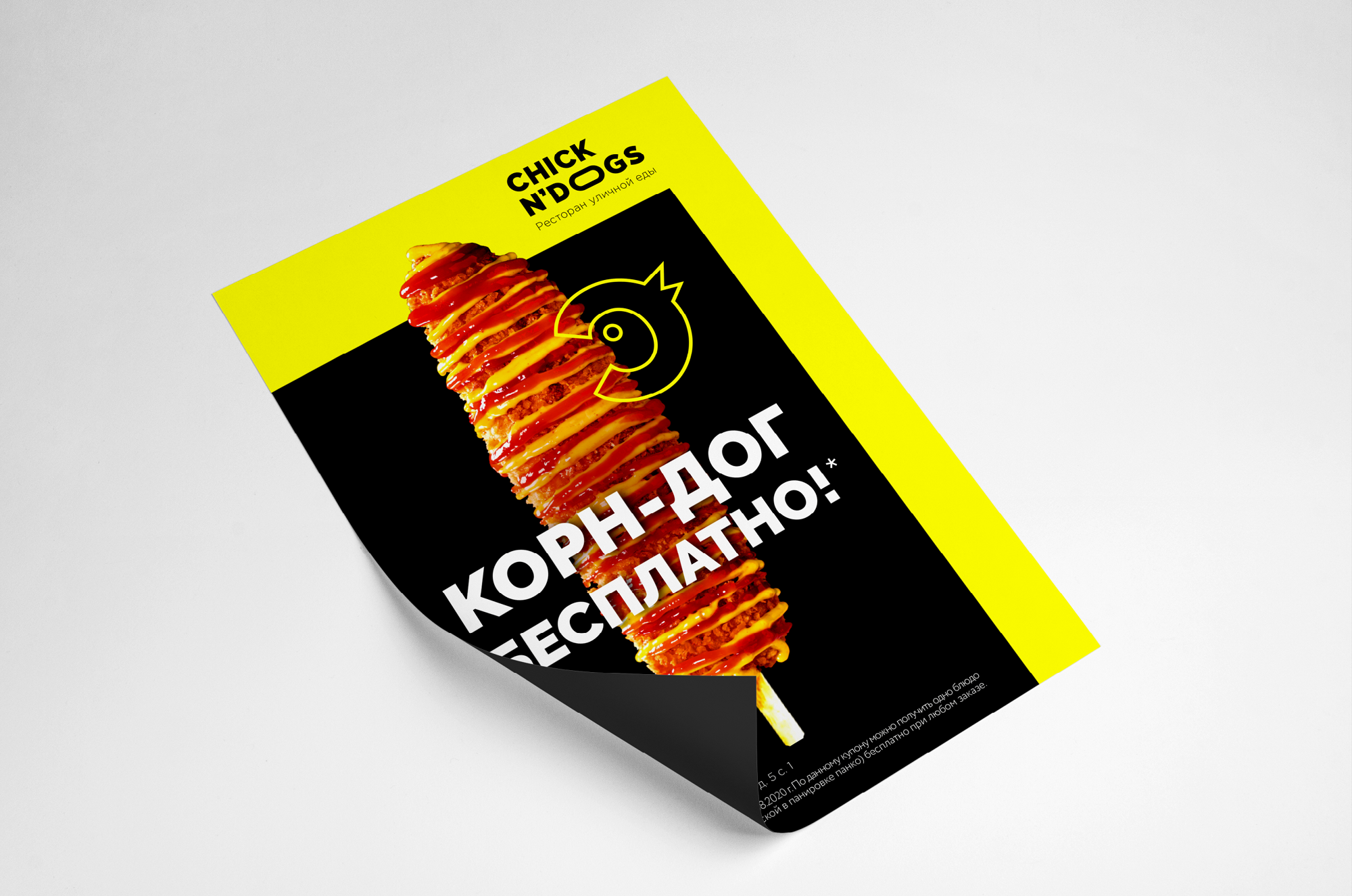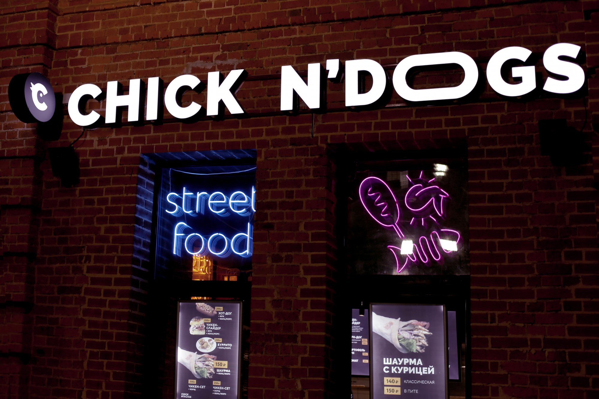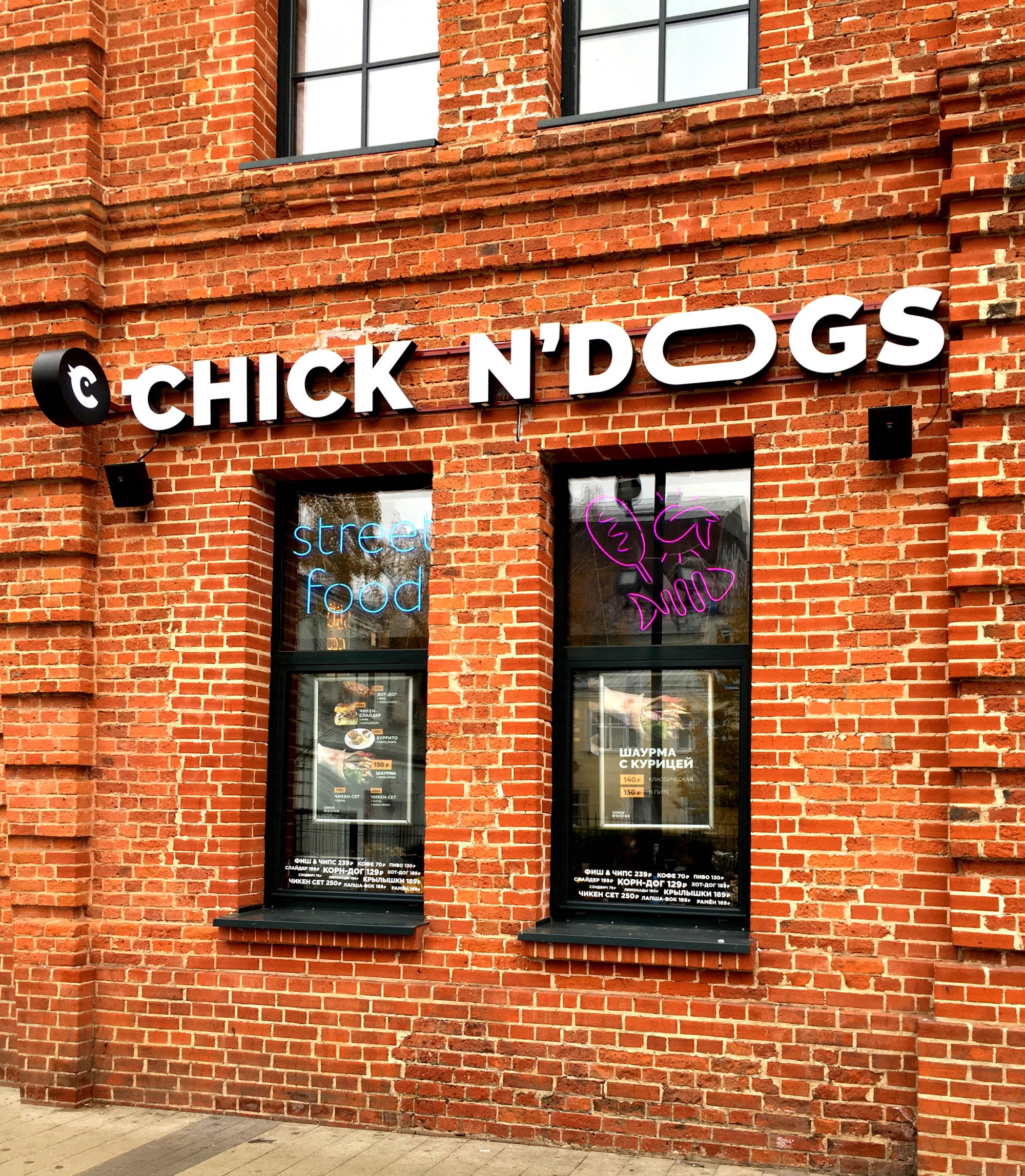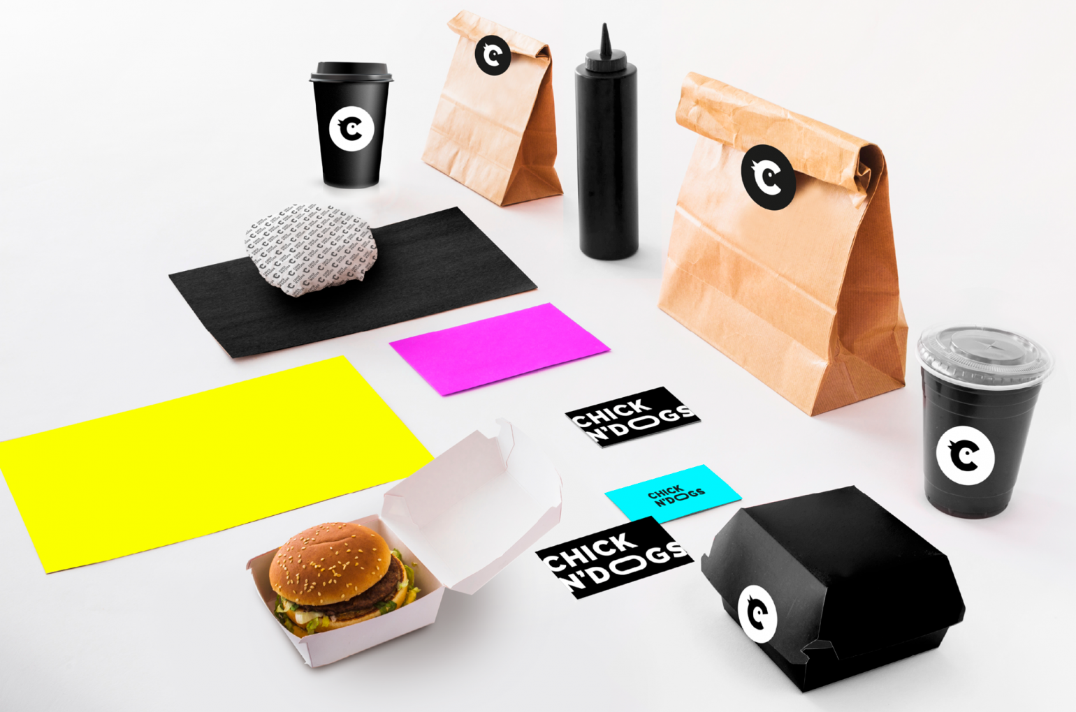 Логотип и фирменный стиль для ресторана уличной еды в Москве. Образ цыпленка появился от литеры С в слове Chick в названии.
