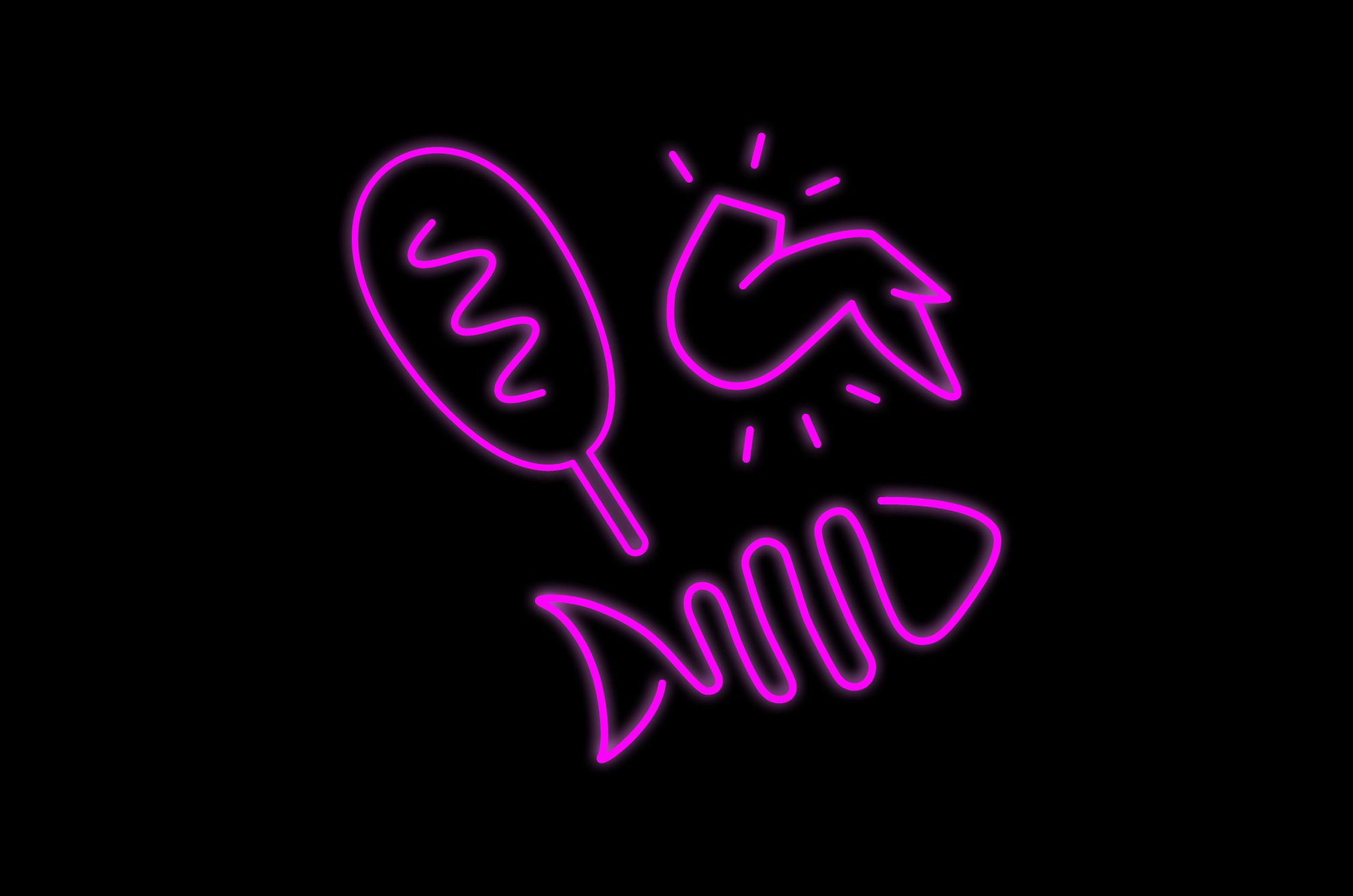 Кроме логотипа был разработан фирменный стиль, гайдлайн, вывеска, концепция неоновых конструкций и вся сопутствующая полиграфия (менюборды, лайтбоксы, наклейки, визитки, флаеры, постеры и.т.д).