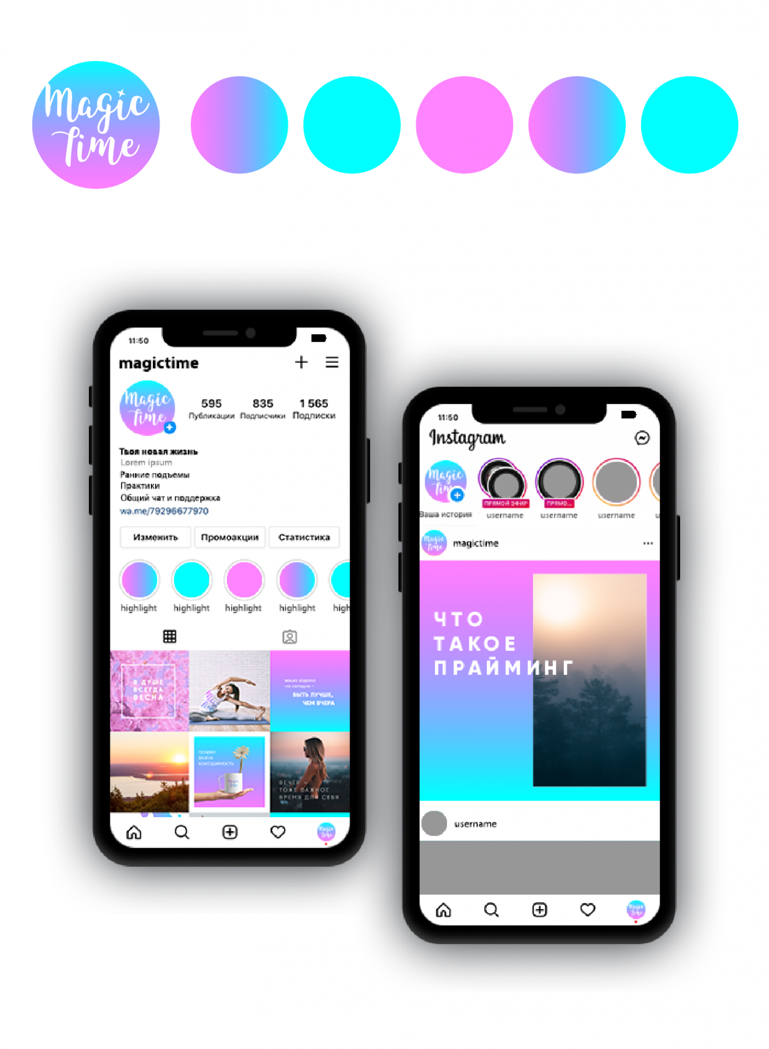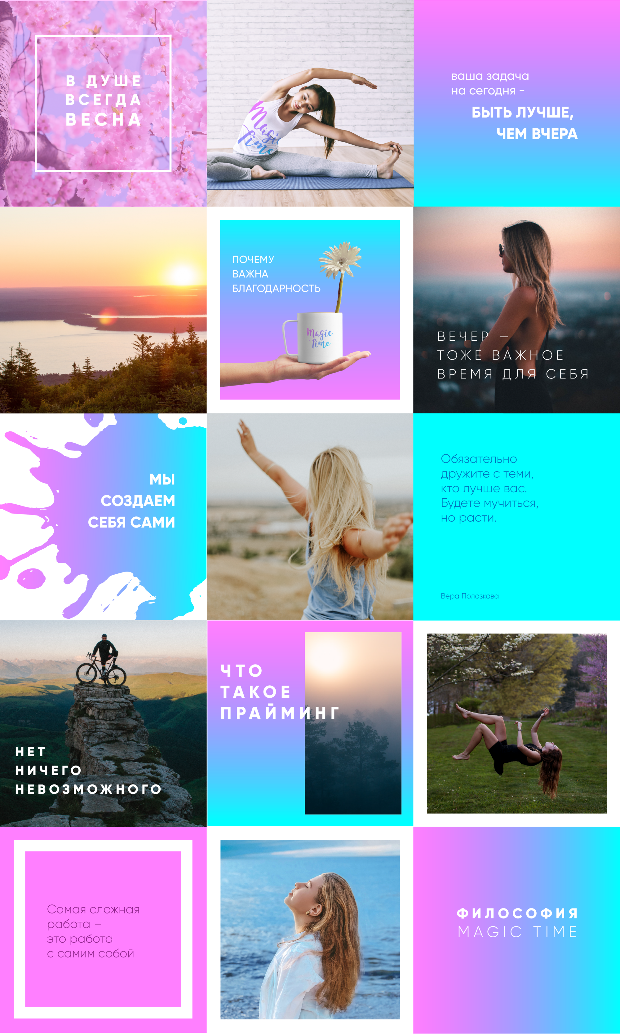 Нейминг, логотип, фирменный стиль и оформление инстаграм для группы по личностному и духовному развитию. Особенностью этого направления является то, что все практики и ритуалы нужно делать обязательно рано утром, т.к. это самое волшебное (зачеркнуто) подходящее время для созидания и планирования своего дня.